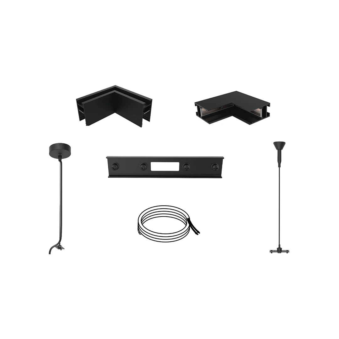 Our 48V accessories range provides everything needed for flexible and professional track installations. Options include a 90° L ceiling joiner, ceiling-to-wall connector, 2 metre wire suspension kit, 2 metre power feed with plug, straight connector, and a 3 metre power cable. Finished in black for a clean, modern look, all accessories are backed by a five-year warranty for dependable performance.