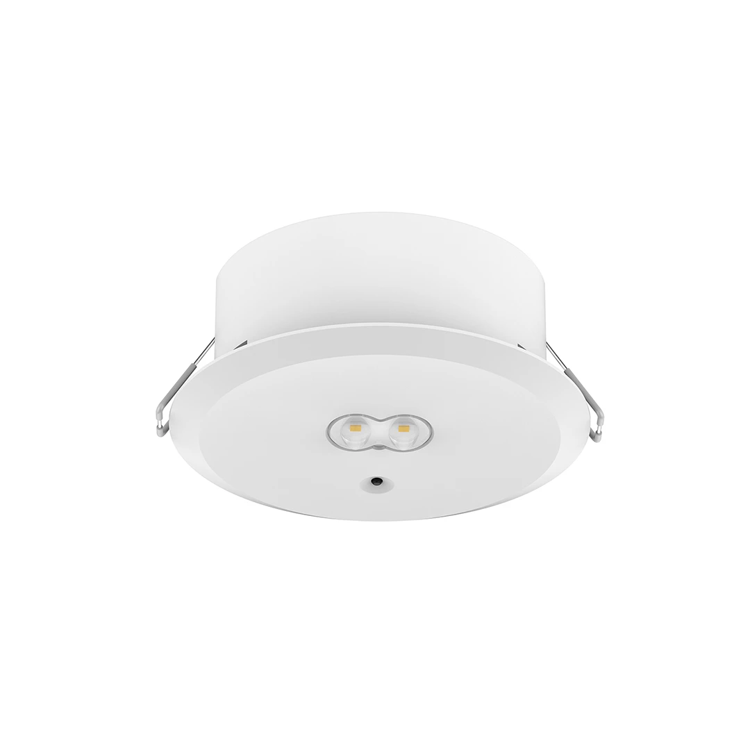A powerful 6W DALI-compatible non-maintained emergency downlight delivering 4W output in emergency mode for up to 3 hours. Suitable for surface or recessed installation, it features a white finish and robust IK08-rated construction.