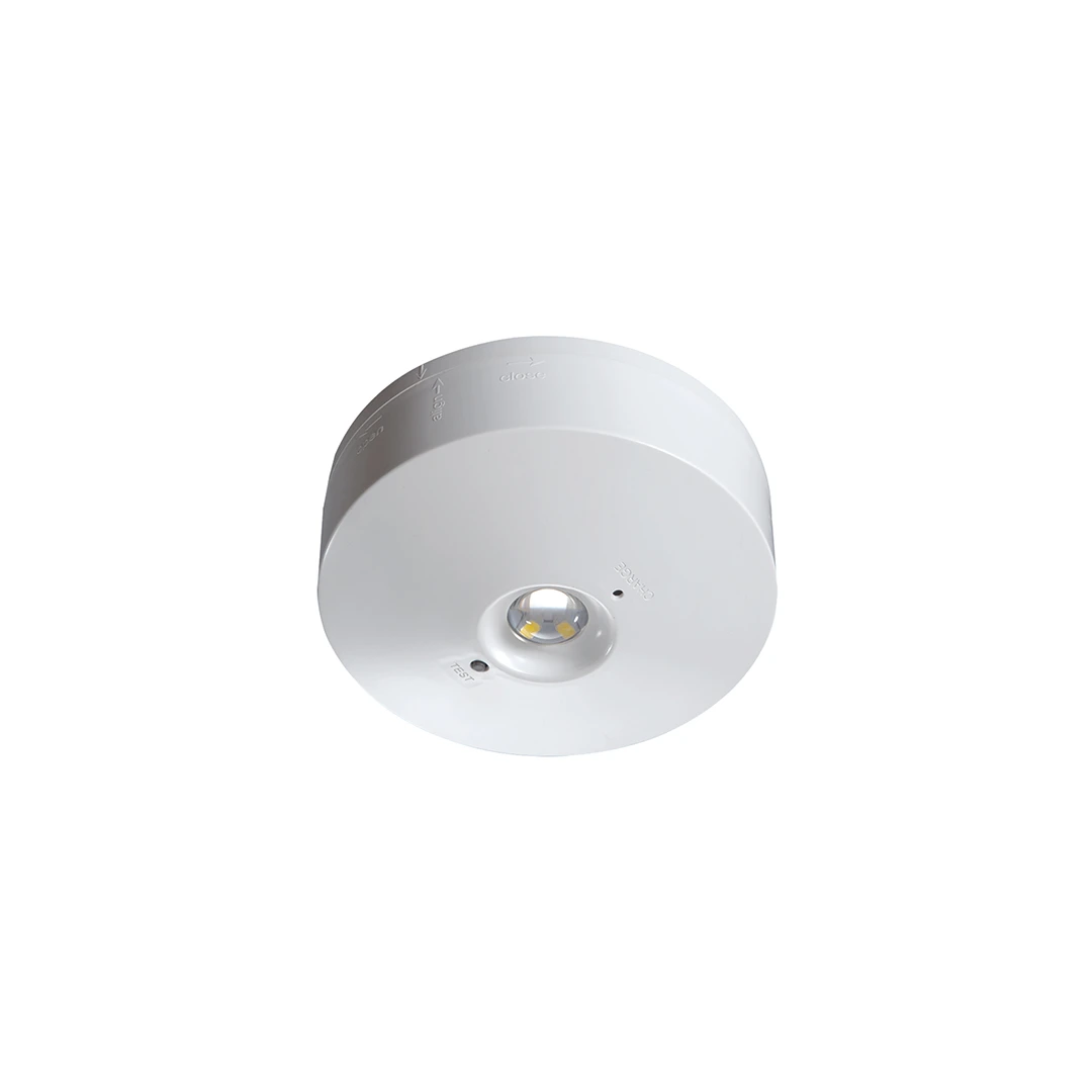 A reliable 3-hour non-maintained emergency LED downlight designed for surface mounting in indoor environments. Finished in white with a discreet green charging indicator and test button, it operates on 220–240V Class 2 input.
