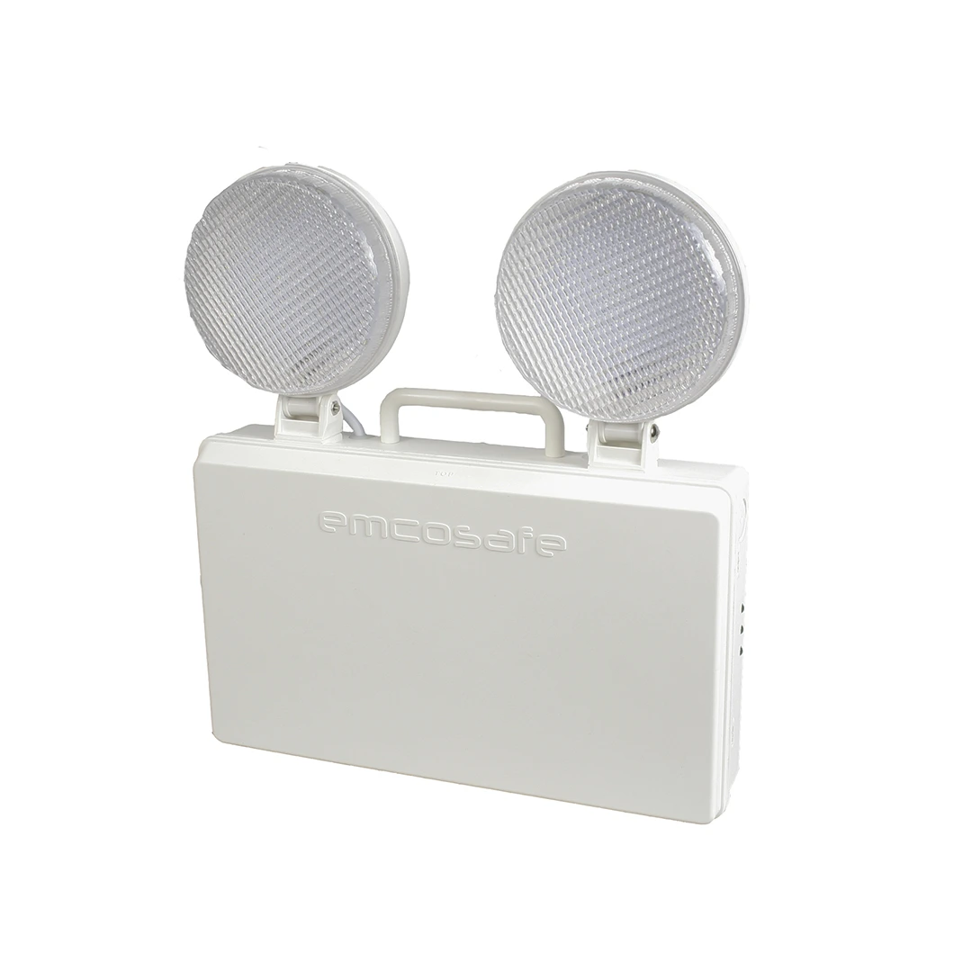 A robust 3-hour non-maintained emergency twinspot designed for reliable indoor use. Finished in white and operating on 220–240V Class 2 input, it provides focused illumination during power outages and recharges fully within 24 hours.