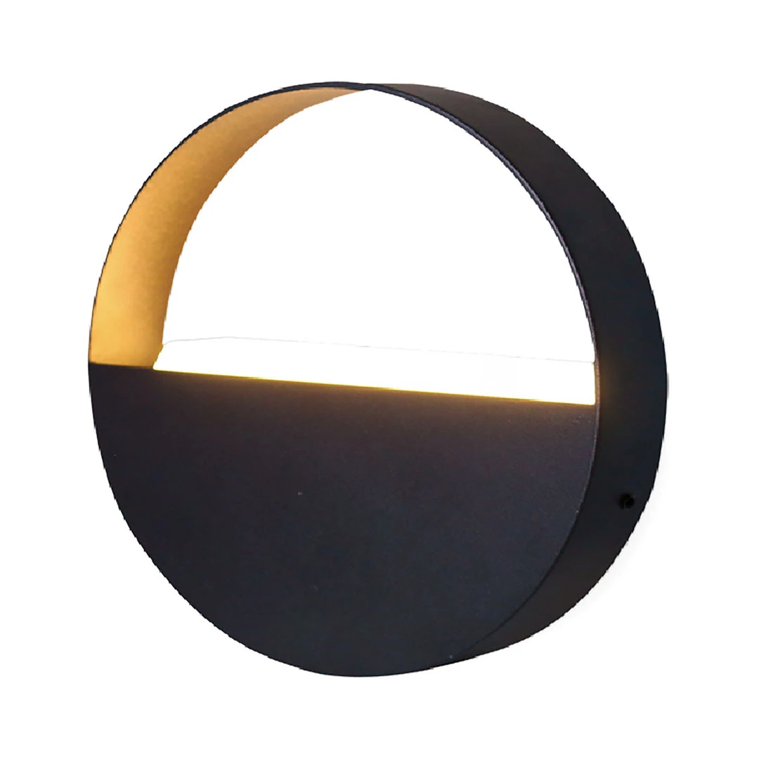 This IP65-rated circular wall light combines durability with a sleek, modern design. Made from black powder-coated aluminium, it measures 180mm in diameter and 40mm in depth, creating a discreet yet stylish finish.
