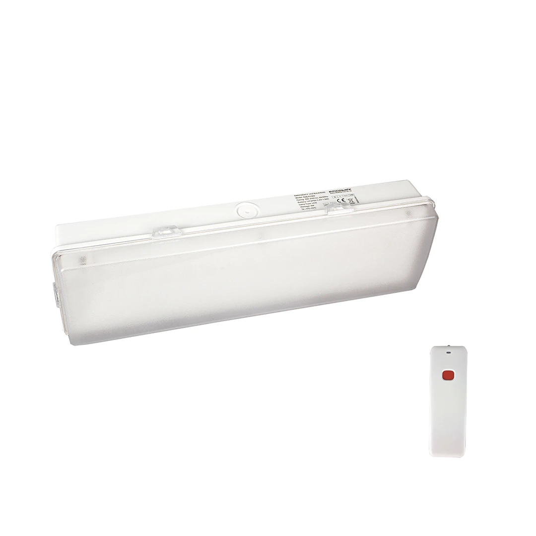 A durable 3-hour self-testing emergency bulkhead designed for reliability and ease of maintenance. Finished in white with an IP65-rated ABS base and polycarbonate diffuser, it operates on 220–240V Class 2 input with a 350mA running current.