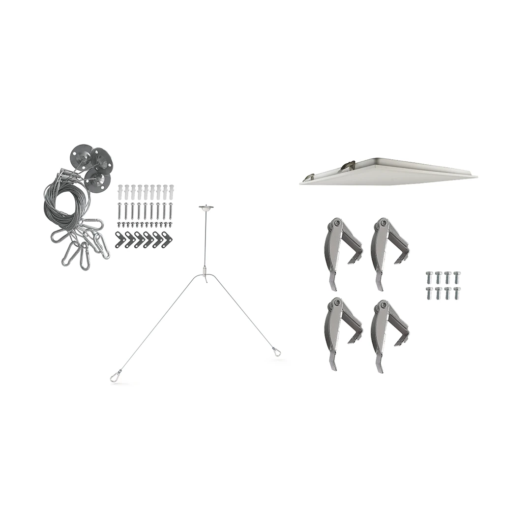 This LED panel suspension and recessed mounting kit offers flexible installation options for a variety of ceiling types. The suspension kit includes PA4*30mm tapping screws and a 1.5 metre cable for secure, adjustable mounting.