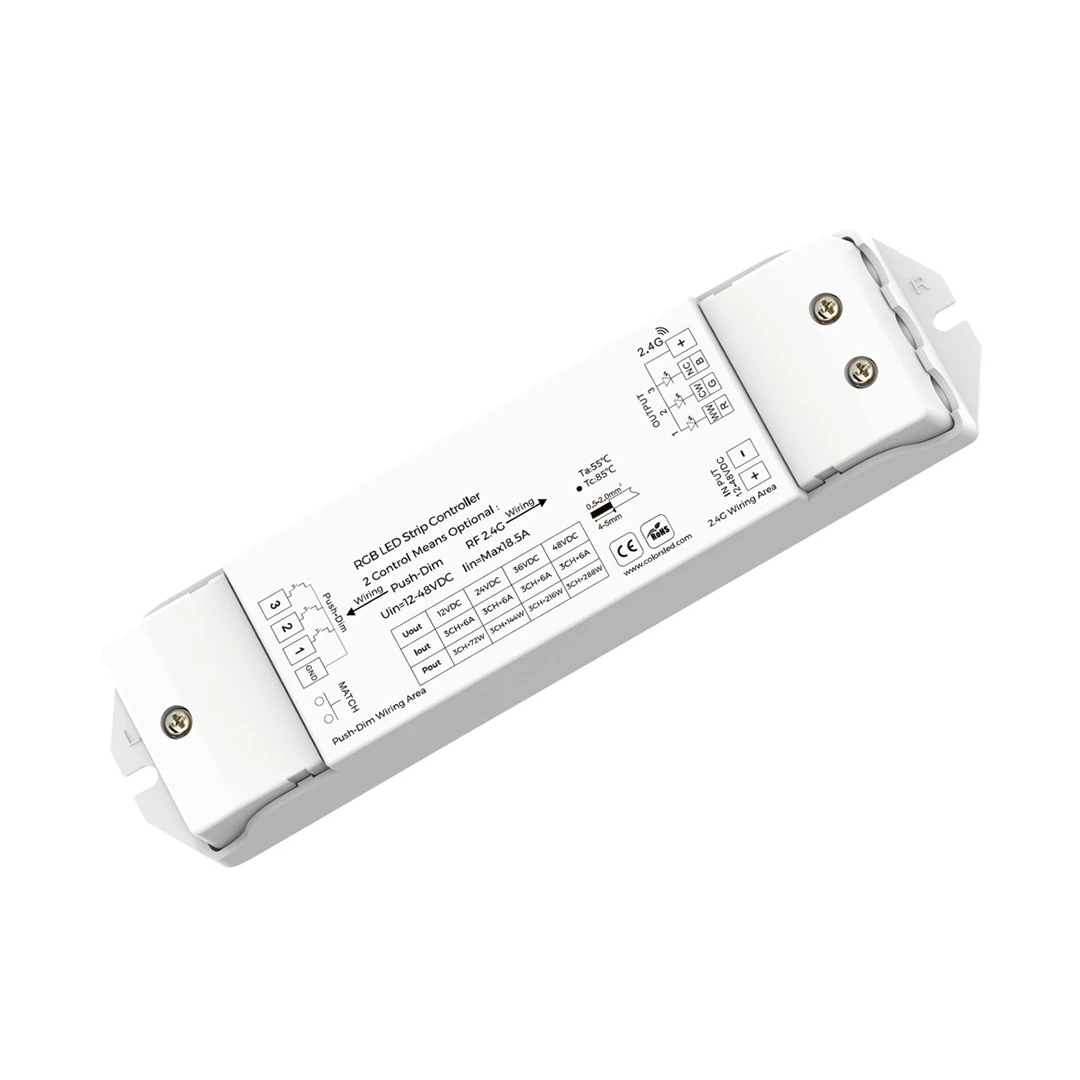 This RGB LED controller offers reliable performance for dynamic colour control, with a 12V–48V DC input and up to 432W maximum output at 24V.