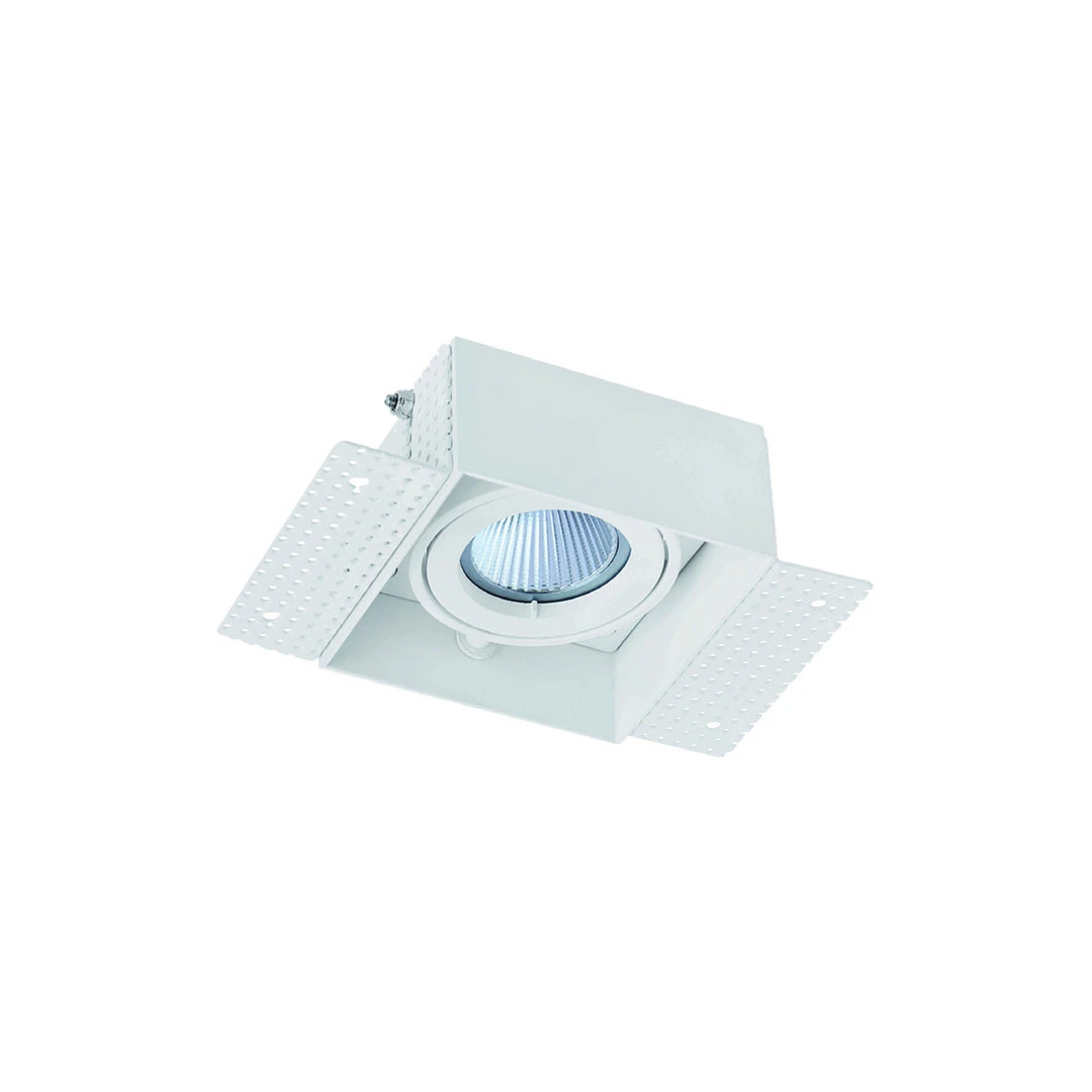 This trimless plaster-in single head gimbal downlight delivers a sleek, modern finish with versatile functionality. Finished in matt white, it is suitable for GU10 lamps as well as LED modules, with model 108411 supplied complete with LED module 550014 (see page 45).