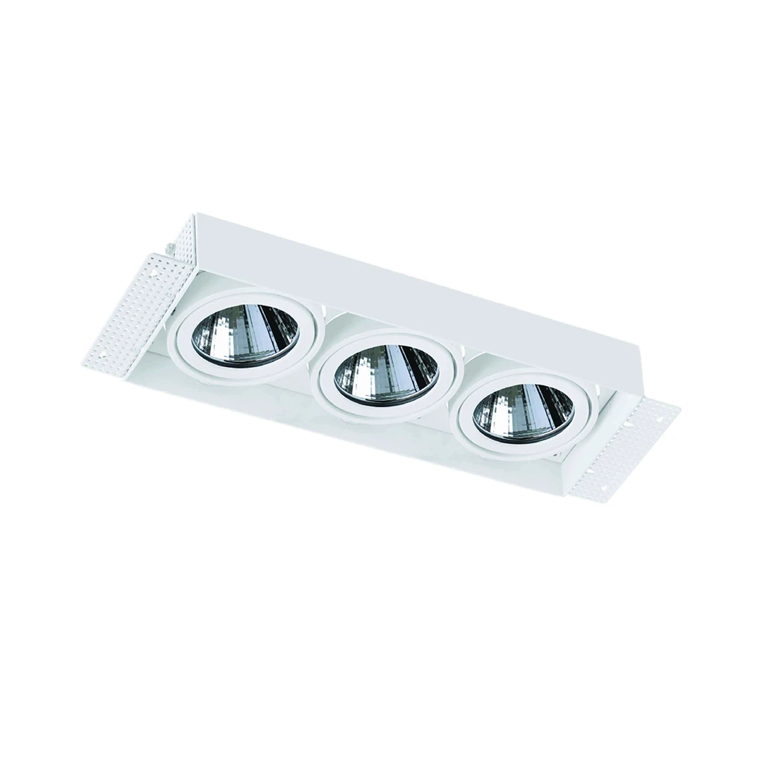 This trimless plaster-in adjustable triple downlight delivers sleek, integrated lighting with a choice of white or black finishes.