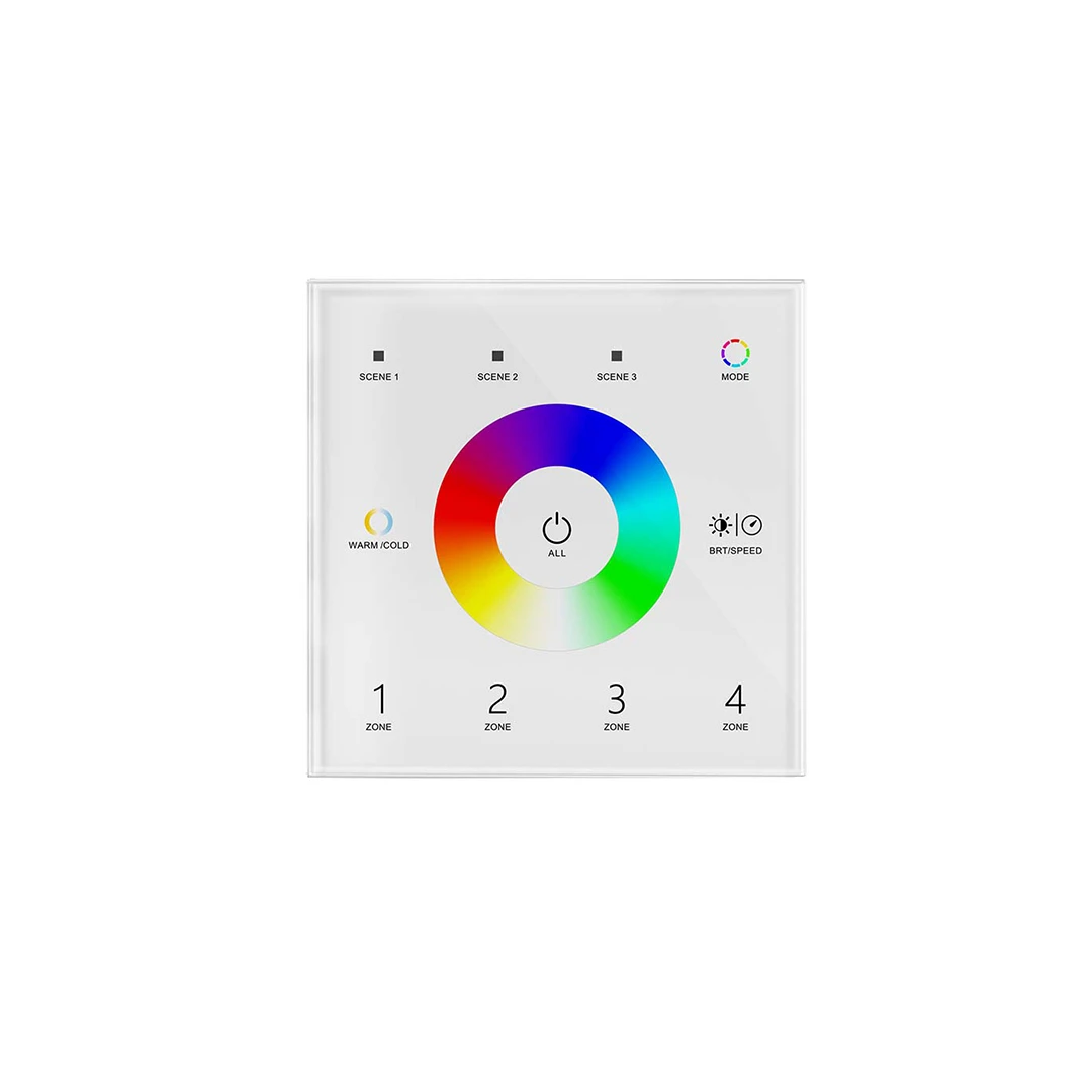 This wall mounted RGB LED controller combines convenience with reliable performance, operating on a 100–240V input voltage. Featuring RF control with a 30m barrier-free range, it allows seamless adjustment of RGB lighting.